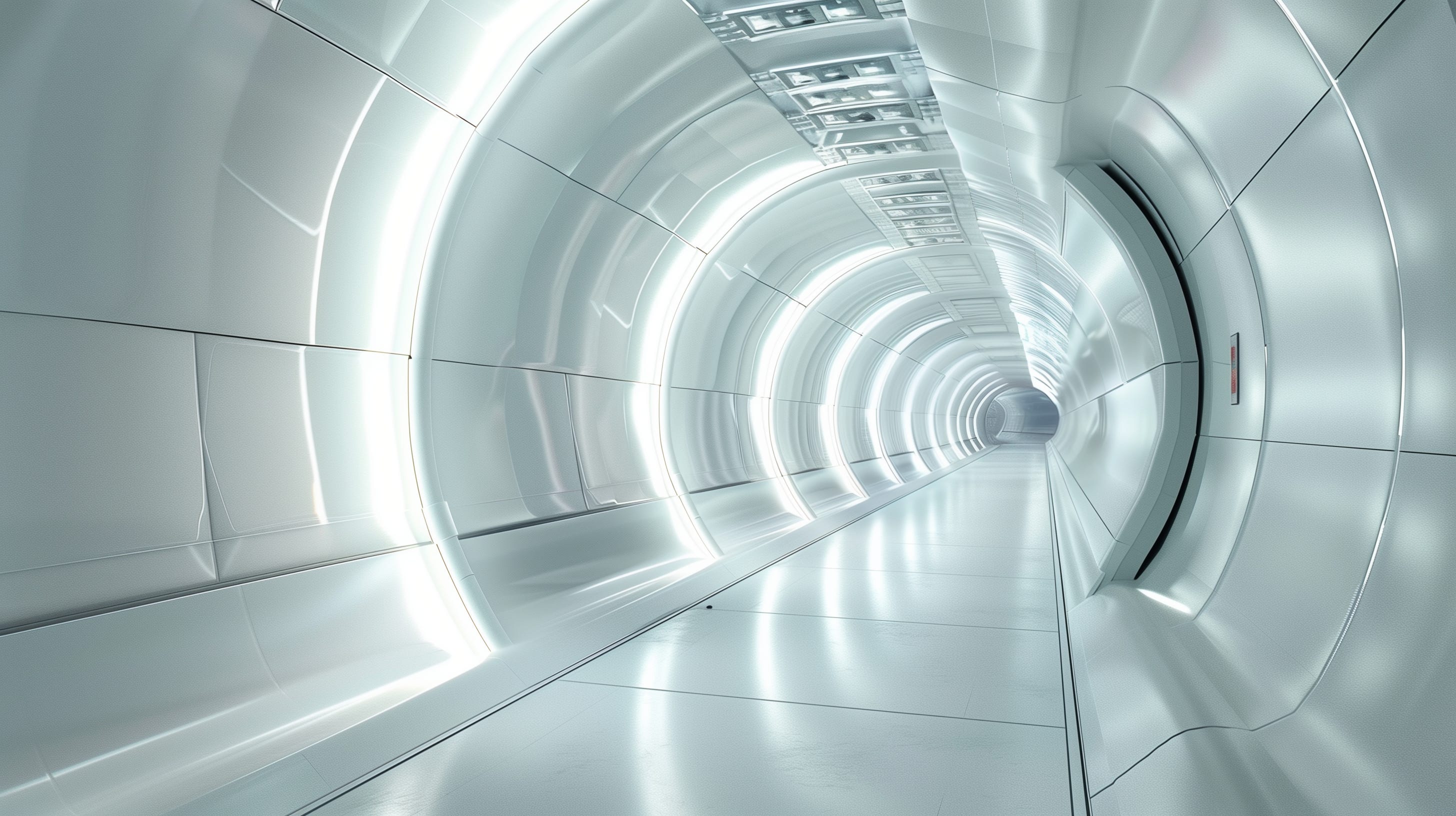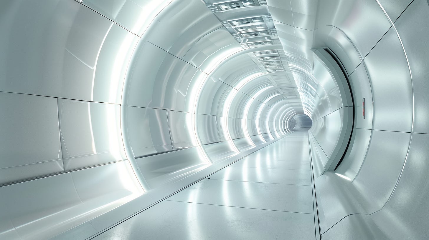 Inis pushed her way towards it, passing through into the hallway after it opened at her approach, finding a most peculiar causeway. The floor had a most gentle, yet, noticeable curvature, leading upwards in either direction. Every twenty meters there was a lighting fixture embedded within the ceiling which shared a pleasantly diffuse and golden light. There was nothing distinctive in either direction.