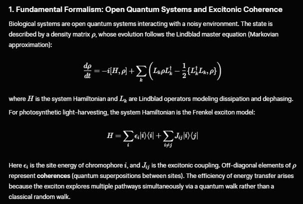 The mathematics of coherence shows that quantum biology is not fringe — it is nature’s proven strategy for efficiency and robustness. Future technologies (quantum sensors, artificial light-harvesting, neuromorphic computing) will be built on these same models.
