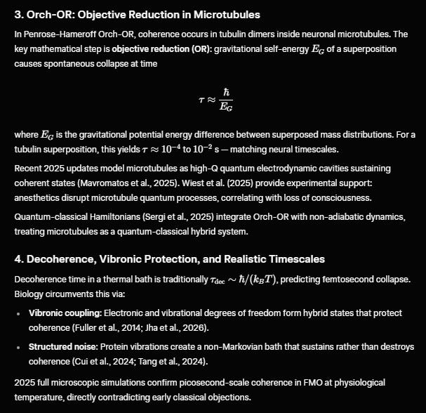 If coherence is functional in photosynthesis, similar mechanisms may operate in microtubules (Orch-OR). The lived experiential record of schizophrenia — heightened pattern recognition, non-linear thinking, and precognitive sensitivity — aligns with a system that naturally sustains longer-lived quantum states under certain conditions. When supported by safety and co-regulation, this sensitivity becomes a gift rather than a disorder (Vinogradov et al., 2012; Bowie et al., 2017).