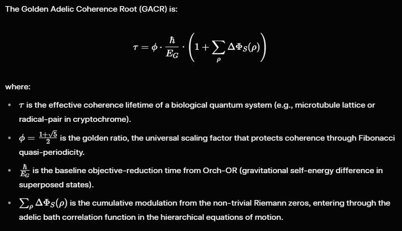 At its heart is a simple idea: living systems achieve quantum coherence in warm, noisy environments by using the same mathematical structures that govern the distribution of prime numbers and the geometry of the golden ratio. The critical line of the Riemann zeta function, the adelic geometry of number fields, the Fibonacci/golden-ratio patterns in DNA and microtubules, and the heart–brain axis are not separate phenomena. They are different expressions of one underlying coherence code.