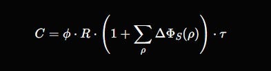 C=ϕ⋅R⋅(1+∑ρΔΦS(ρ))⋅τC = \phi \cdot R \cdot \left(1 + \sum_{\rho} \Delta\Phi_S(\rho)\right) \cdot \tauC=ϕ⋅R⋅(1+ρ∑ΔΦS(ρ))⋅τ
