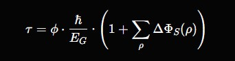 τ=ϕ⋅ℏEG⋅(1+∑ρΔΦS(ρ))\tau = \phi \cdot \frac{\hbar}{E_G} \cdot \left(1 + \sum_{\rho} \Delta\Phi_S(\rho)\right)τ=ϕ⋅EGℏ⋅(1+ρ∑ΔΦS(ρ))